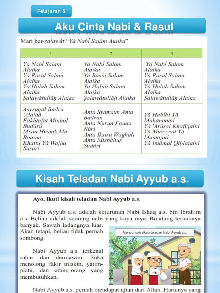 JelaskanBukti cinta kepada Nabi dan Rosul dapat ditunjukan dengan menaati sunahnya dan mengikuti setiap ajarannya memperbanyak shalawat kepadanya dan mengikuti akhlaknya Apa yang dapat kamu petik dari kisah Nabi Ayyub as. Https Bsd Pendidikan Id Data 2013 Kelas 4sd Siswa Kelas 04 Sd Pendidikan Agama Islam Dan Budi Pekerti Siswa Pdf. Berusaha untuk senantiasa menjalankan sunnah-sunnahnya.