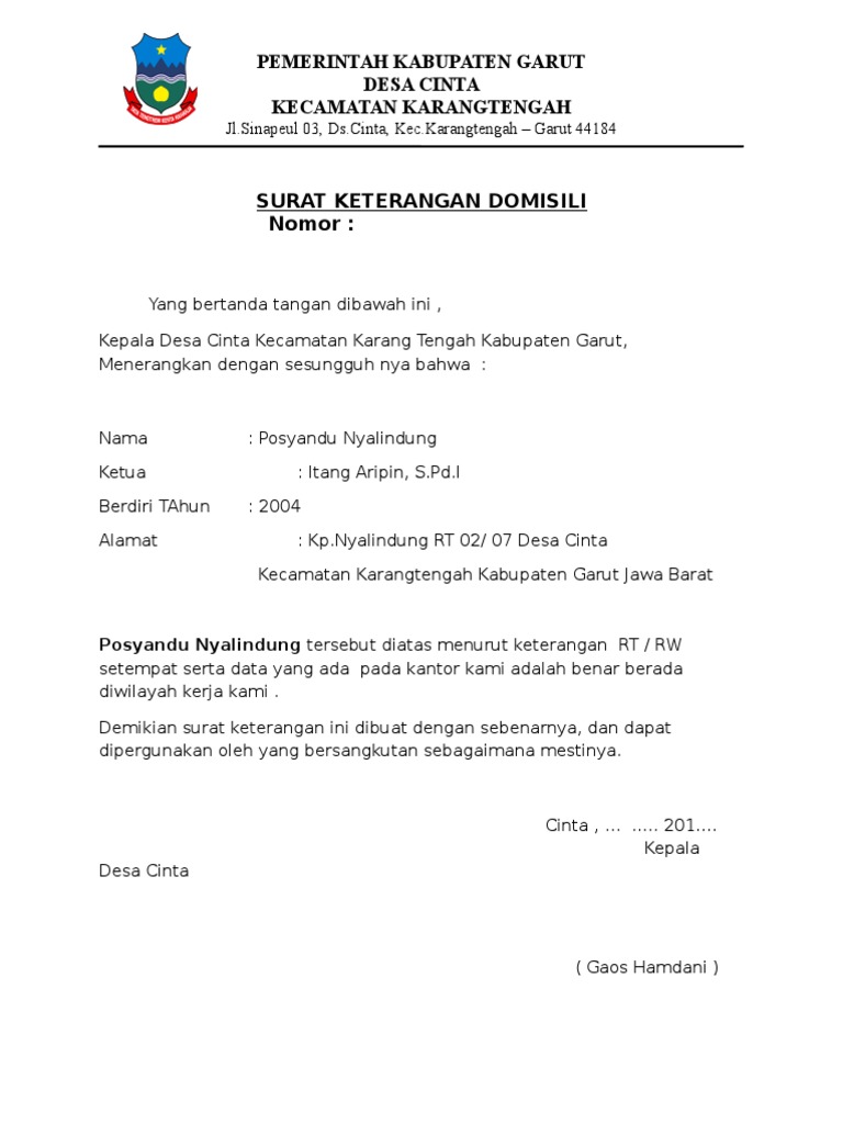 Contoh surat keterangan domisili paud dari desa Domisili Paud
