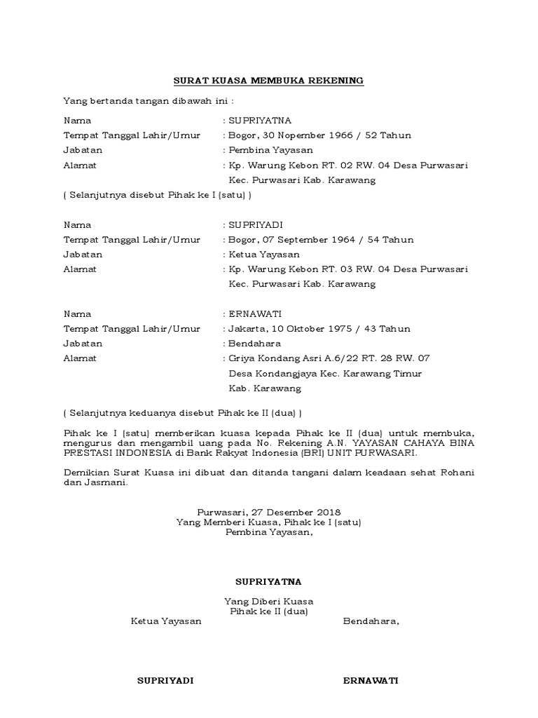 Contoh Surat Kuasa Pembukaan Rekening Bank Bca Kumpulan Contoh Surat Dan Soal Terlengkap
